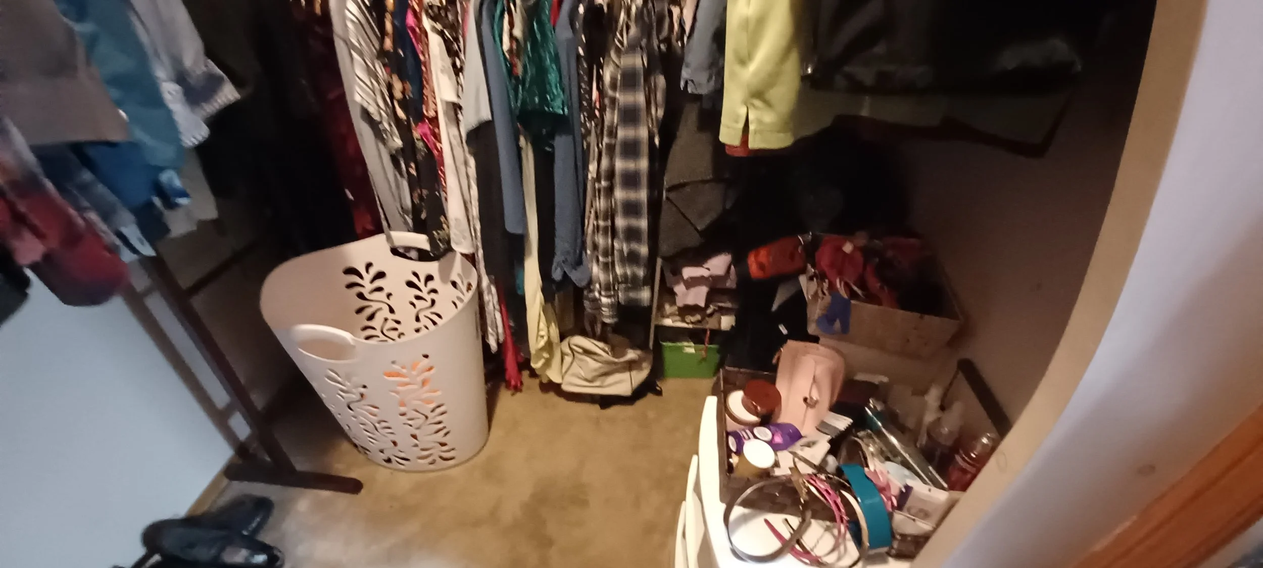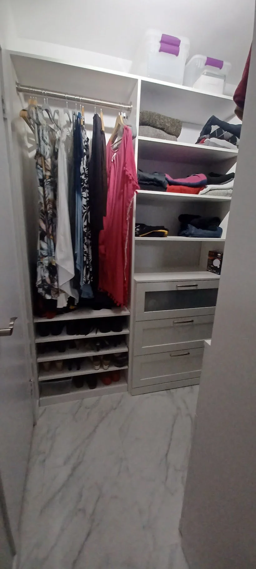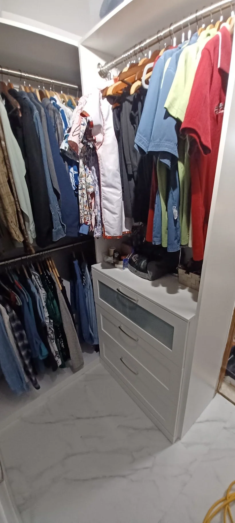 Clothing and accessories were competing for space, with no built-in solutions to tie the room together.